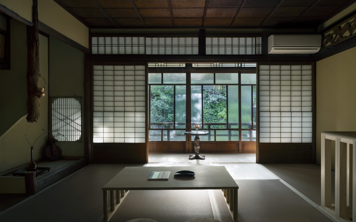 穏やかなピンクベージュをテーマカラーにした落ち着いた畳敷きの和室に、日本をはじめとした、工藝の技術の調度品を用いた空間。縁側からは、プライベートの薬草ガーデンを見おろすことができます。窓をあけると風が通り、畳、障子、珪藻土、和紙などの日本の素材に落ちる光を楽しみながら、あなたの創造力を優しく起こしてくれます。